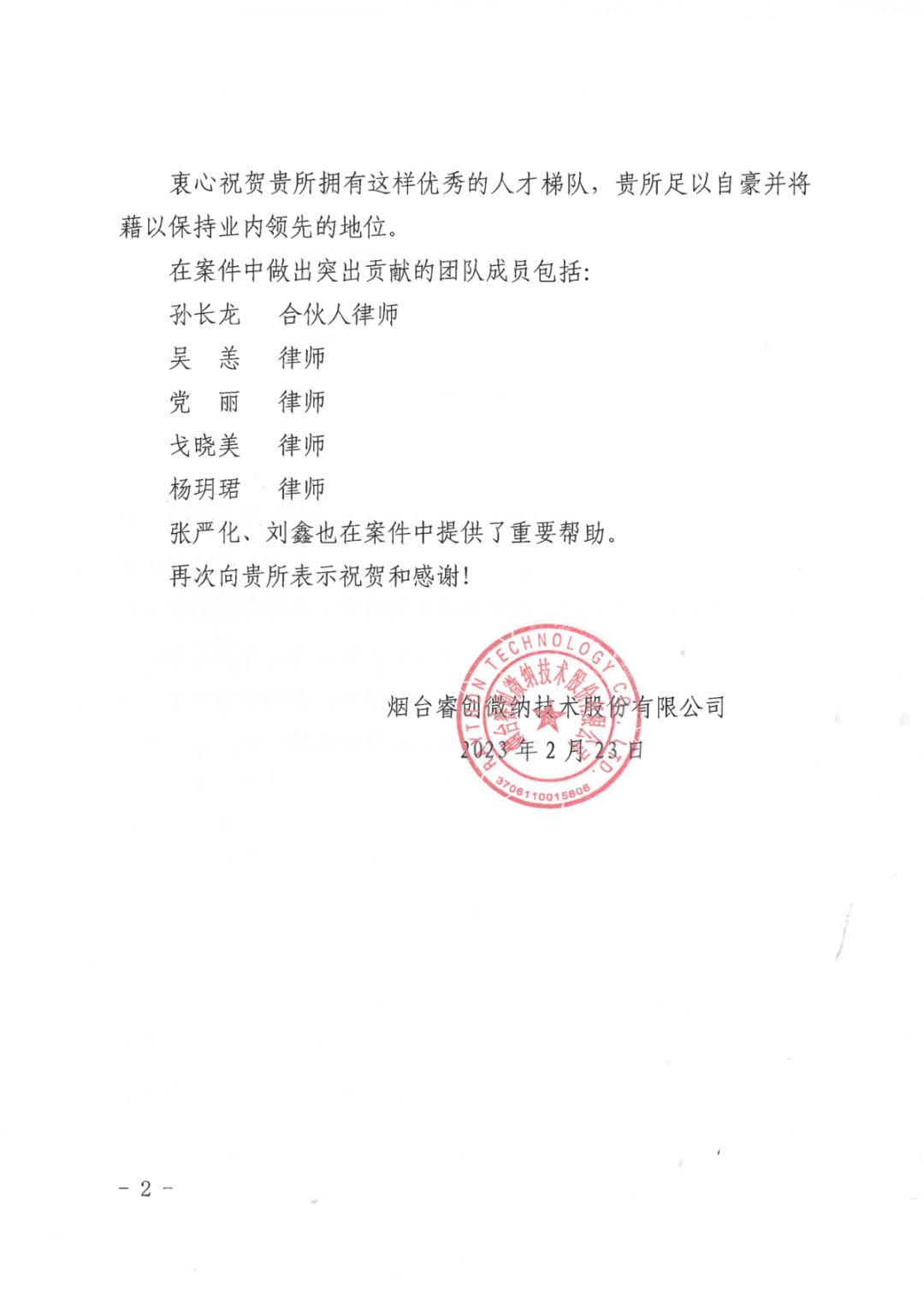 最后,感谢睿创集团知识产权团队对于本案的积极贡献,以及对于雷竞技的支持与信任,共同成就恶意诉讼案的最终胜利!